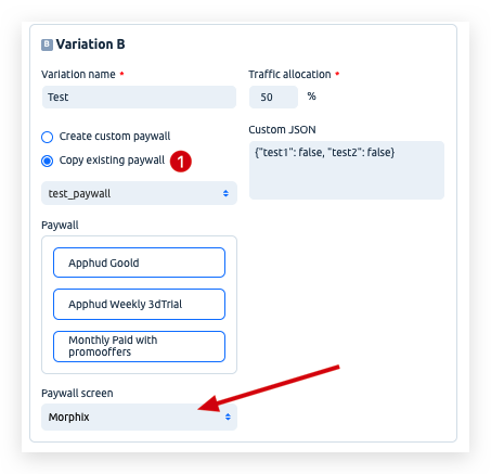 - Then, assign this Paywall to Variation B of your experiment. The "Paywall Screen" field in the variation will be filled in automatically based on the selected Paywall.